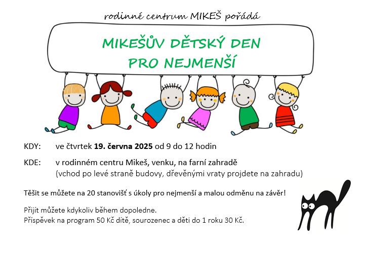 Zveme vás na Mikešův dětský den pro nejmenší. Těšit se můžete na 20 stanovišť s úkoly pro nejmenší a malou odměnu na závěr.